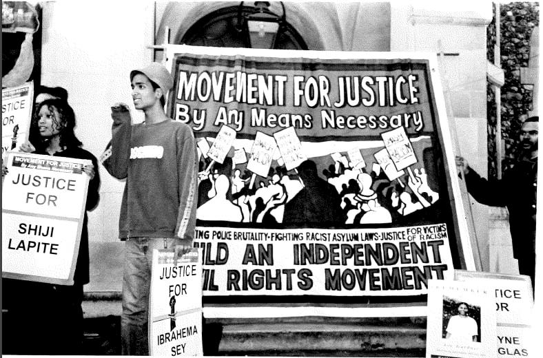 And so, on 16 October 1998, people gathered outside the PCA conference at Church House in Westminster. Placards and banners sported slogans such as ‘MOVEMENT FOR JUSTICE By Any Means Necessary’, ‘Fighting Police Brutality’, ‘Fighting Racist Asylum Laws’.